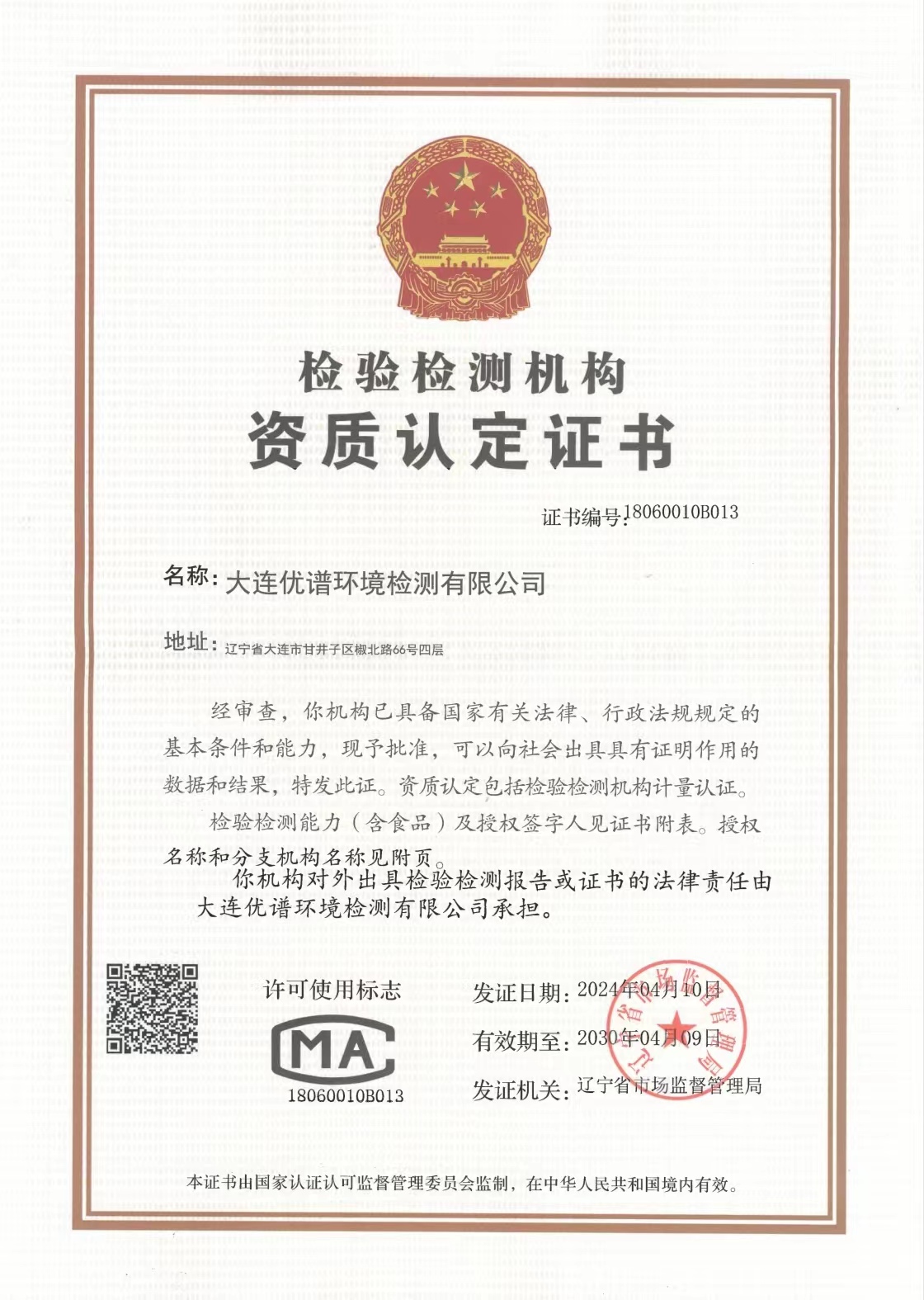 大連優(yōu)譜環(huán)境檢測有限公司環(huán)境檢測CMA資質在遼寧省質量技術監(jiān)督局網站上查詢。